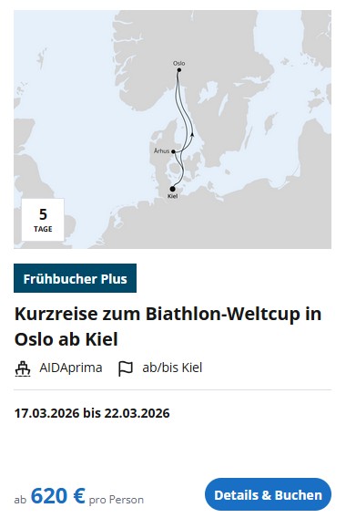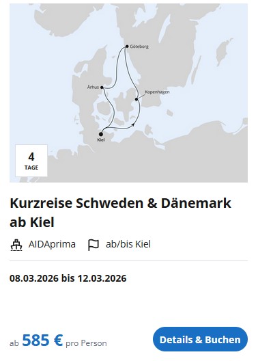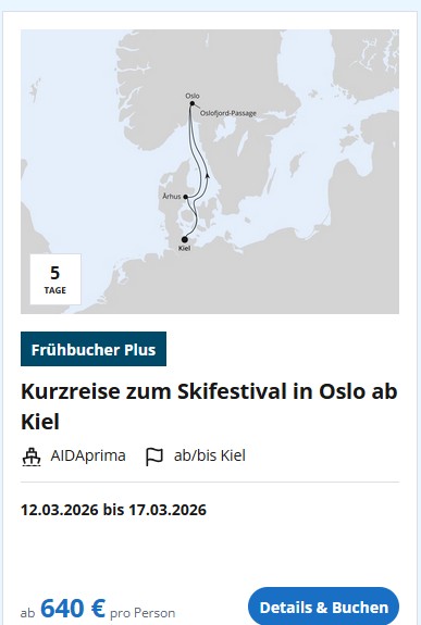 Bitte beachten Sie, dass Änderungen des Routenverlaufs und/oder der Fahrt- bzw. Liegezeiten, AIDA vorbehalten sind. Es gelten immer die jeweils aktuellen Ausschreibungen laut AIDA.